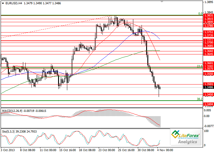 На прошлой неделе после заседания ФРС пара резко упала в цене. Несмотря на то, что конкретные даты не были названы, инвесторам достаточно было намёка на сворачивание программы количественного смягчения, чтобы закрыть длинные позиции. Многие аналитики полагают, что резкое снижение было обусловлено также перекупленностью пары. Сегодня во время азиатской сессии пара евро/доллар опустилась до уровня 1.3440, однако затем вернулась к прежнему уровню и сейчас торгуется ниже отметки 1.3500.